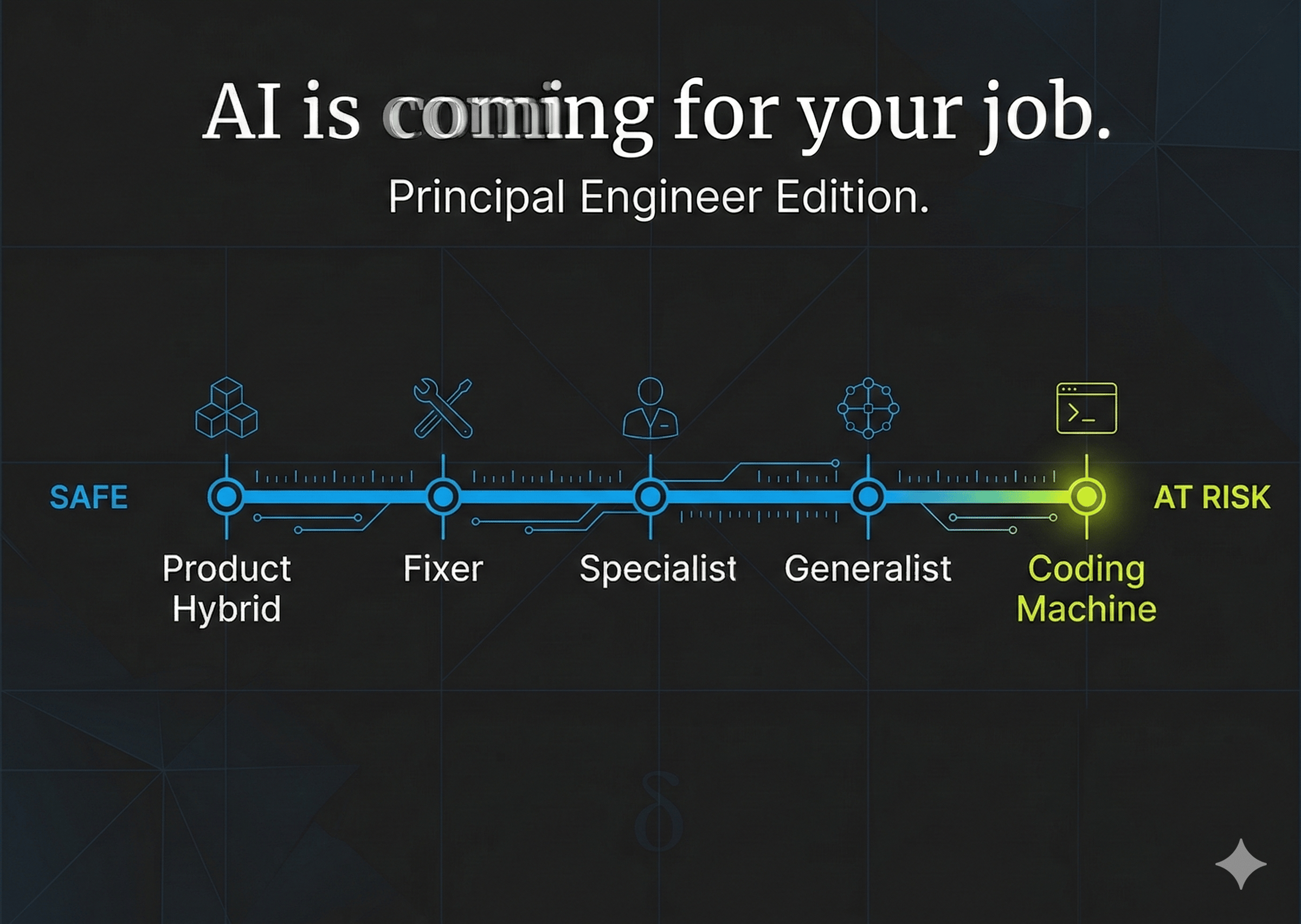 The δeltas newsletter March 10th The coding machine is dead. What's next? ↓ This post is based on the video above, adjusted for readability. Read or watch, which ever you prefer. AI is coming for your job. Principal Engineer Edition. Meta has a set of archetypes for IC7 (Senior Staff Engineers) and up. Michael Novati was the poster child of one of them. He recently talked about how AI made his archetype deprecated. That got me thinking. What's the risk for each archetype, and how can senior...